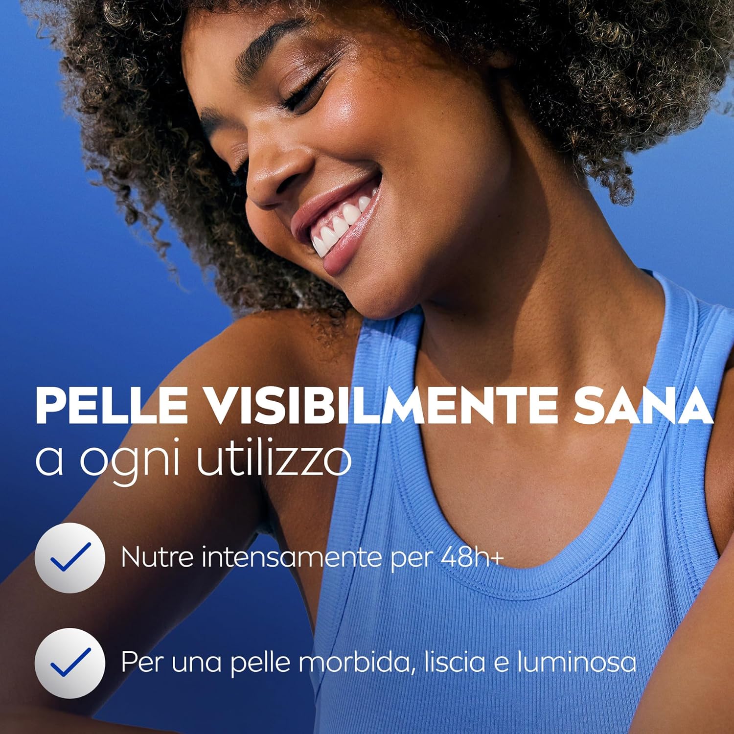 Experience 48-hour hydration with NIVEA's Nourishing Cocoa Butter Body Cream, expertly formulated for dry and very dry skin. This 400 ml cream combines pure hyaluronic acid, cocoa butter, and an intensive nourishing serum to deliver lasting moisture and visible radiance. The lightweight, non-greasy formula absorbs quickly while strengthening your skin's natural moisture barrier. Dermatologically tested for compatibility, it leaves skin noticeably softer and smoother with each application. The sustainable packaging uses 50% recycled plastic, reflecting NIVEA's commitment to both skin and environmental care.